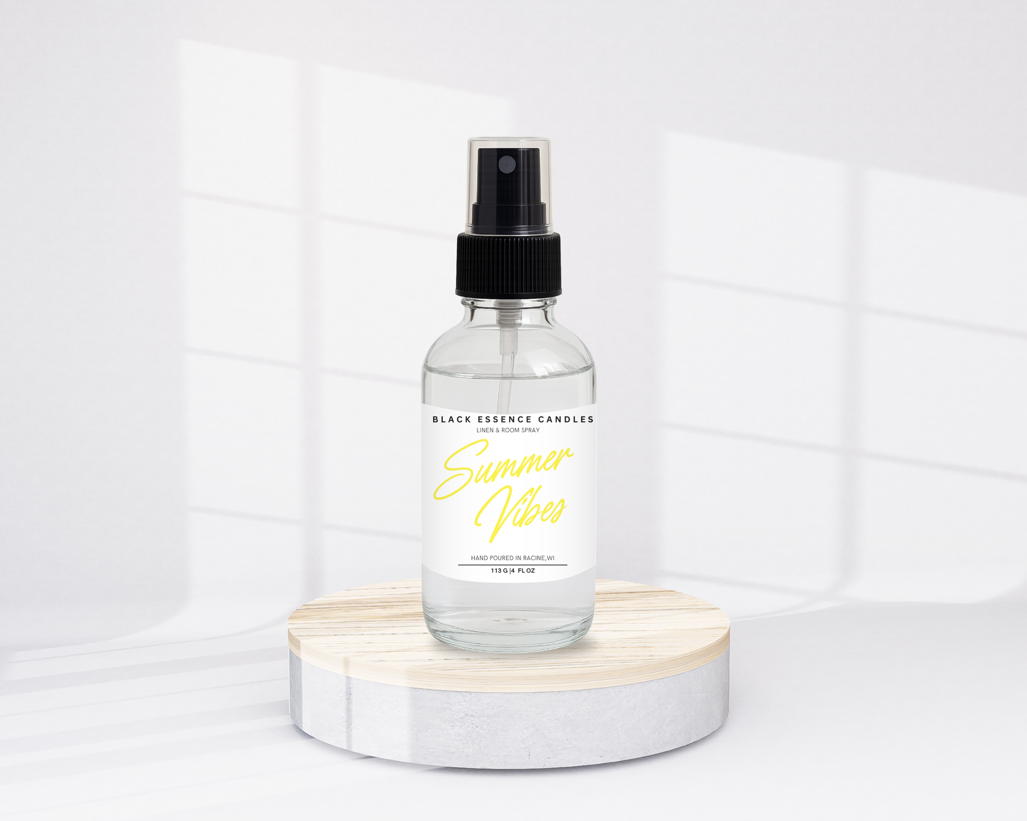 Elevate your home with our Summer Vibes Linen & Room Spray. Refresh your fabrics and rooms with the 4oz spray to get a lingering, long-lasting aroma. Indulge in a delightful scent and enjoy the comforting environment.