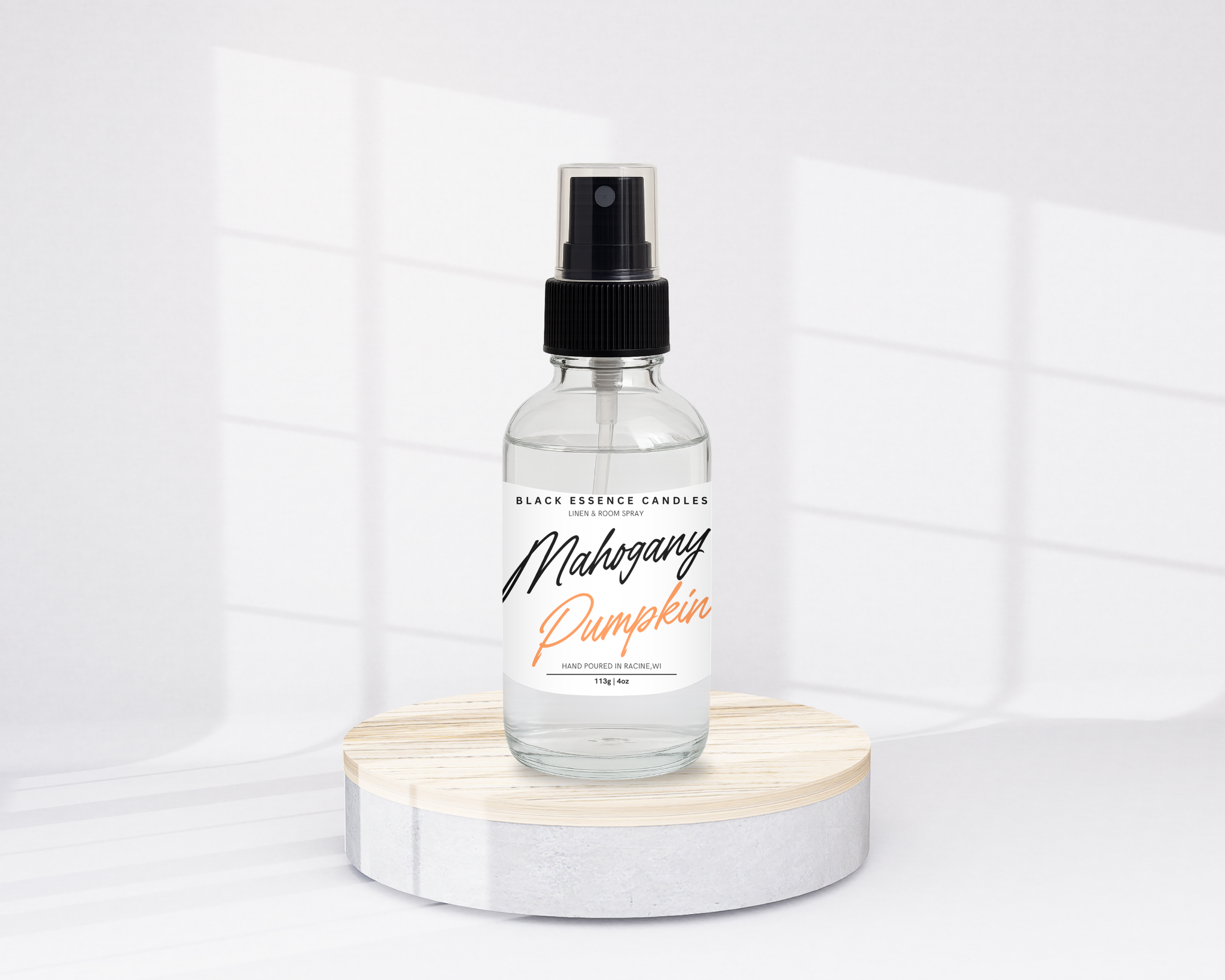Embrace the essence of fall with our Mahogany Pumpkin linen & room spray, a captivating fragrance that brings together the richness of autumn's most cherished scents. This luxurious blend combines the hearty warmth of clove, the earthy allure of applewood, and the familiar spice of pumpkin to create a comforting and sophisticated aroma.