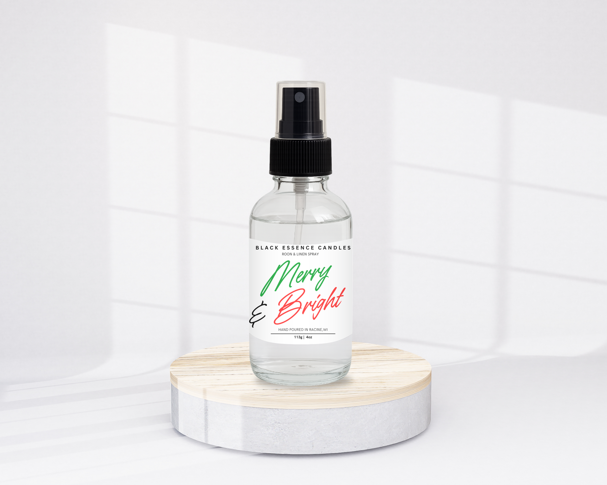 Merry & Bright Linen & Room Spray envelops your space in a delightful symphony of scents. Immerse yourself in a fruity, spicy blend featuring notes of cinnamon, clove, nutmeg, and juniper. The aromatic journey is complemented by a sweet, musky background, creating a warm and inviting atmosphere perfect for the holiday season."